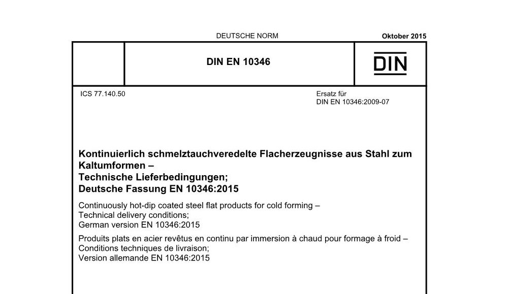 德标欧标DIN EN 10346-2015冷成形一连热浸镀钢板及钢带 手艺规范