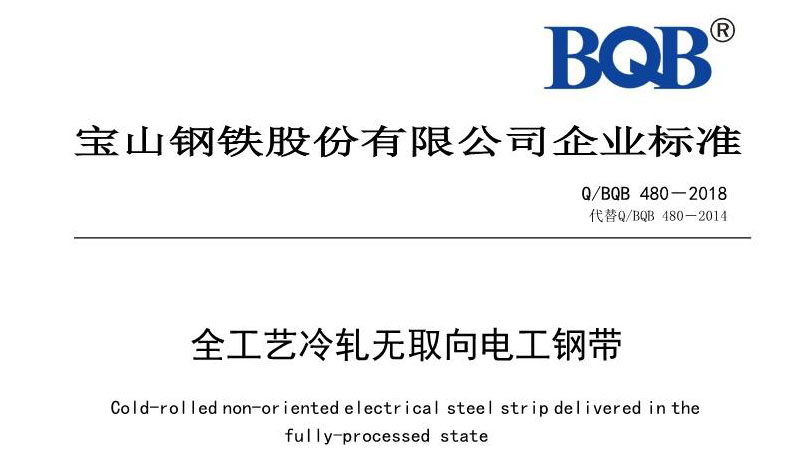 宝钢企业标准Q/BQB 480-2018 全工艺冷轧无取向电工钢带