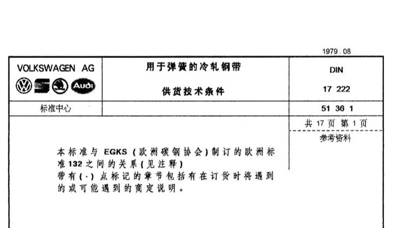 德国标准 DIN 17222用于弹簧的冷轧钢带 执行标准 手艺规范