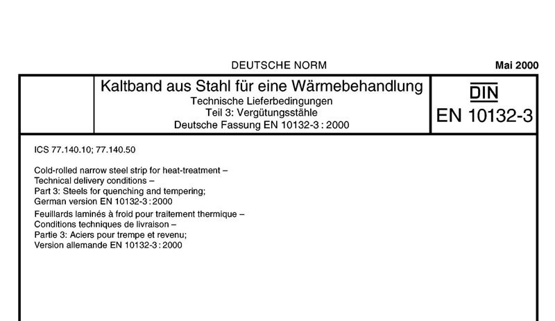 欧标德标DIN EN 10132-1 热处置惩罚用冷轧窄钢带 行业参考标准(1)