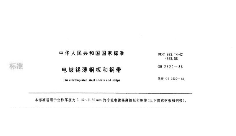 国标BG/T 2520-88冷轧电镀锡钢板钢带 执行标准参考