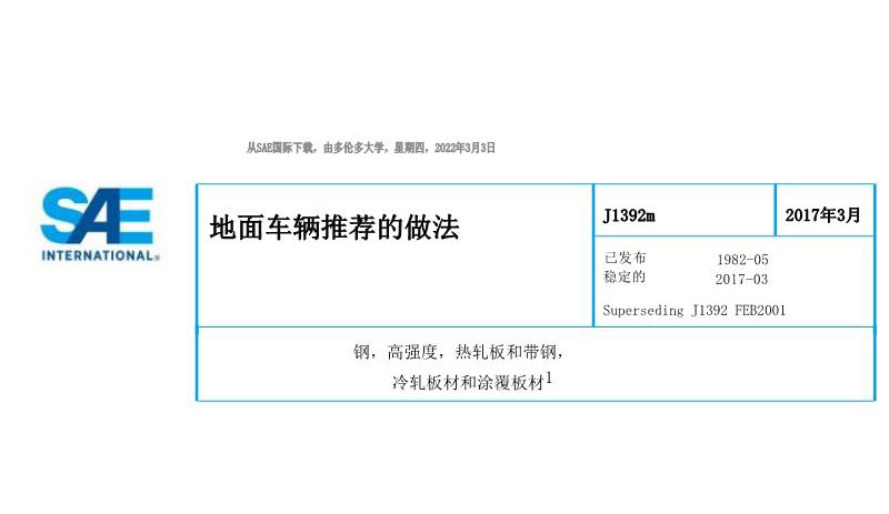 美国SAE J1392-2017 高强度热轧钢板 冷轧钢板 执行标准和供货手艺要求