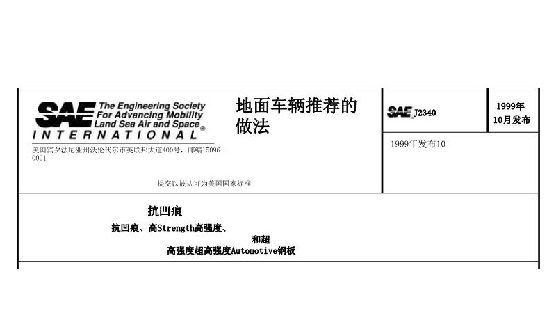 美国汽车工程标准SAE J2340 高强度汽车钢 执行标准参考