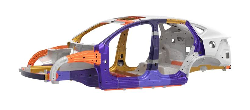 该车在整车轻量化、吉帕钢用材比例上抵达国际纯电动白车身的领先水平。。其应用了6类吉帕钢质料,,,白车身吉帕钢比例超50%,,,电池包框架吉帕钢100%,,,最高强度热成型质料用到2000MPa级别,,,冷成型质料应用到1700MPa级别。。
